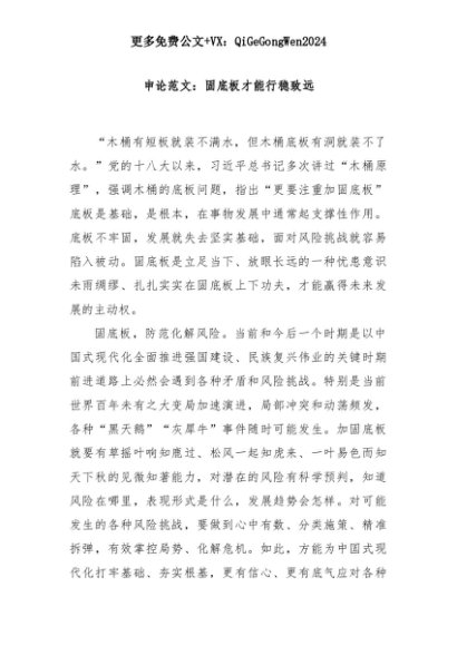 【七哥公文】2025年:申论范文:固底板才能行稳致远+更多免费公文+VX:QiGeGongWen2024+更多免费公文+VX:QiGeGongWen2024
