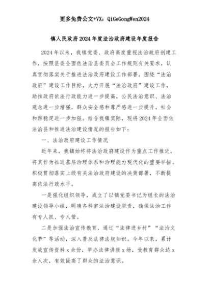 【七哥公文】2025年:镇人民政府2024年度法治政府建设年度报告+更多免费公文+VX:QiGeGongWen2024+更多免费公文+VX:QiGeGongWen2024
