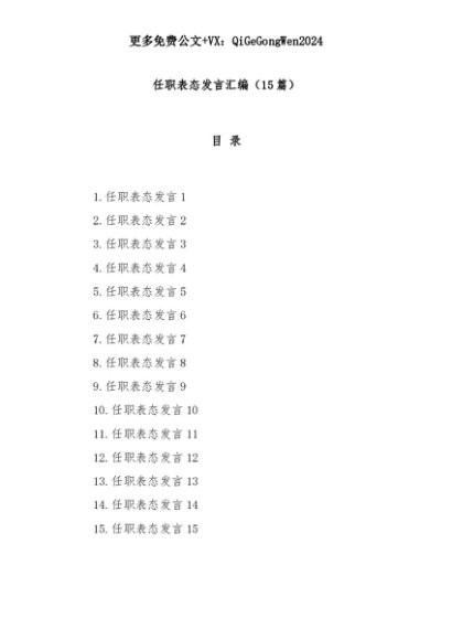 【七哥公文】2025年:(15篇)任职表态发言汇编+更多免费公文+VX:QiGeGongWen2024+更多免费公文+VX:QiGeGongWen2024