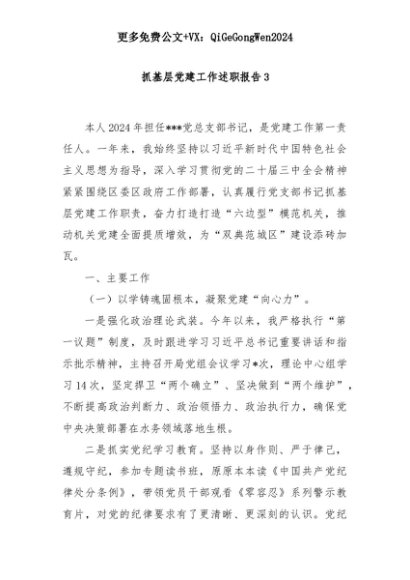 【七哥公文】2025年:抓基层党建工作述职报告3+更多免费公文+VX:QiGeGongWen2024+更多免费公文+VX:QiGeGongWen2024