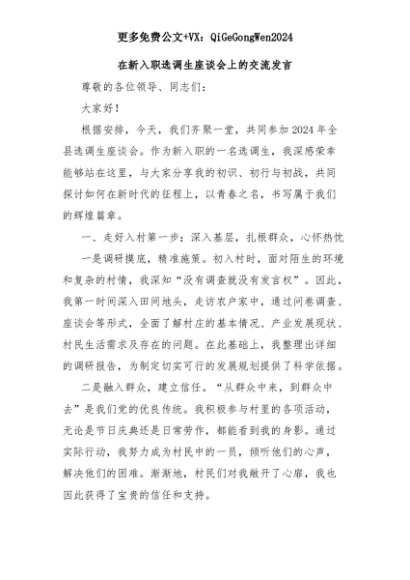 【七哥公文】2025年:在新入职选调生座谈会上的交流发言+更多免费公文+VX:QiGeGongWen2024+更多免费公文+VX:QiGeGongWen2024