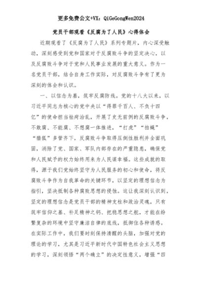 【七哥公文】2025年:党员干部观看《反腐为了人民》心得体会+更多免费公文+VX:QiGeGongWen2024+更多免费公文+VX:QiGeGongWen2024