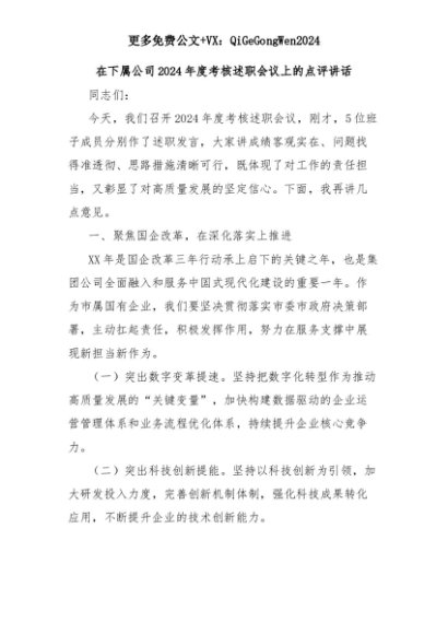 【七哥公文】2025年:在下属公司2024年度考核述职会议上的点评讲话+更多免费公文+VX:QiGeGongWen2024+更多免费公文+VX:QiGeGongWen2024