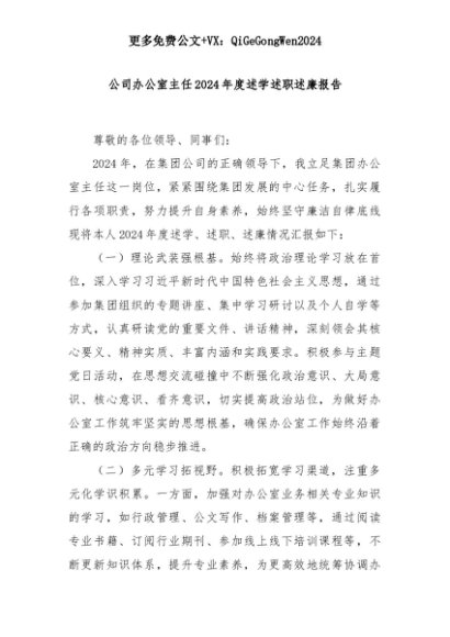 【七哥公文】2025年:公司办公室主任2024年度述学述职述廉报告+更多免费公文+VX:QiGeGongWen2024+更多免费公文+VX:QiGeGongWen2024
