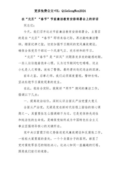 【七哥公文】2025年:在“元旦”“春节”节前廉洁教育安排部署会上的讲话+更多免费公文+VX:QiGeGongWen2024+更多免费公文+VX:QiGeGongWen2024