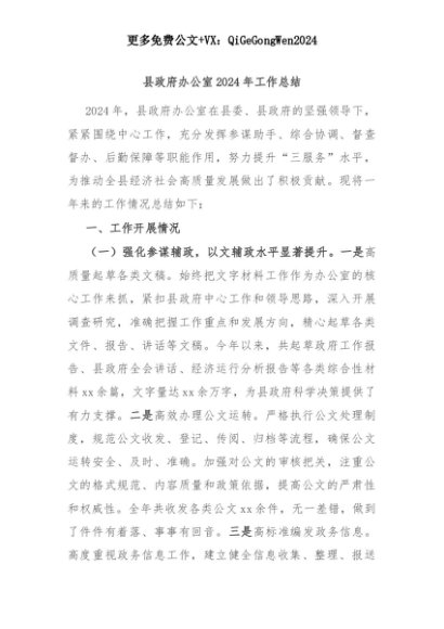 【七哥公文】2025年:县政府办公室2024年工作总结+更多免费公文+VX:QiGeGongWen2024+更多免费公文+VX:QiGeGongWen2024