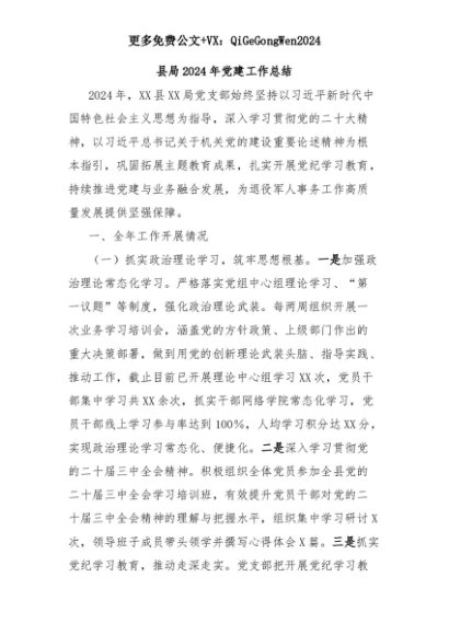 【七哥公文】2025年:县局2024年党建工作总结+更多免费公文+VX:QiGeGongWen2024+更多免费公文+VX:QiGeGongWen2024