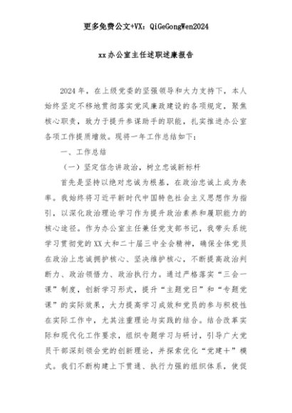 【七哥公文】2025年:xx办公室主任述职述廉报告+更多免费公文+VX:QiGeGongWen2024+更多免费公文+VX:QiGeGongWen2024