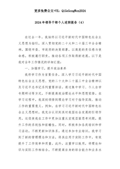 【七哥公文】2025年:2024年领导干部个人述职报告(4)+更多免费公文+VX:QiGeGongWen2024+更多免费公文+VX:QiGeGongWen2024