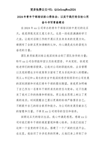【七哥公文】2025年:2024年青年干部培训班心得体会:以实干践行岗位初心用奋斗书写青春建功+更多免费公文+VX:QiGeGongWen2024+更多免费公文+VX:QiGeGongWen2024