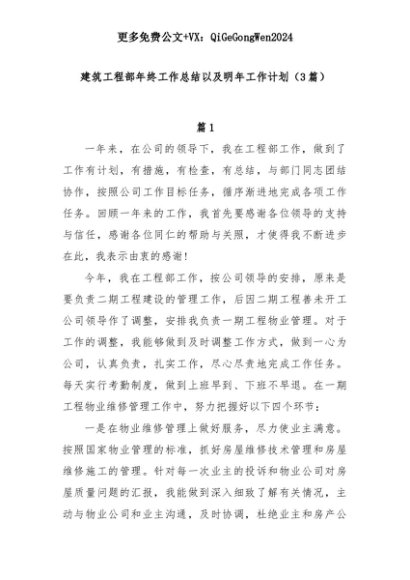 【七哥公文】2025年:(3篇)建筑工程部年终工作总结以及明年工作计划+更多免费公文+VX:QiGeGongWen2024+更多免费公文+VX:QiGeGongWen2024