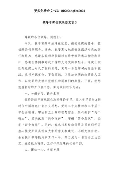 【七哥公文】2025年:领导干部任职表态发言3+更多免费公文+VX:QiGeGongWen2024+更多免费公文+VX:QiGeGongWen2024