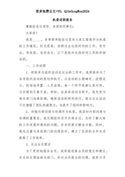 【七哥公文】2025年:执委述职报告+更多免费公文+VX:QiGeGongWen2024+更多免费公文+VX:QiGeGongWen2024