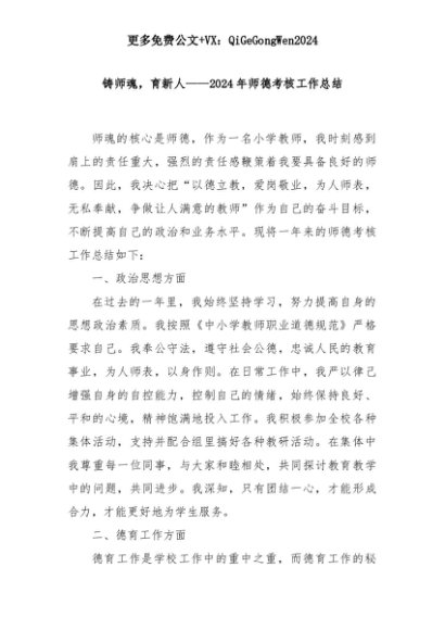 【七哥公文】2025年:铸师魂,育新人——2024年师德考核工作总结+更多免费公文+VX:QiGeGongWen2024+更多免费公文+VX:QiGeGongWen2024