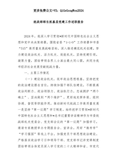 【七哥公文】2025年:统战部部长抓基层党建工作述职报告+更多免费公文+VX:QiGeGongWen2024+更多免费公文+VX:QiGeGongWen2024