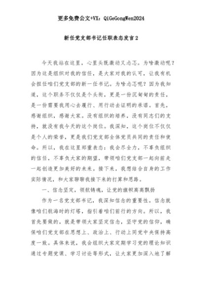 【七哥公文】2025年:新任党支部书记任职表态发言2+更多免费公文+VX:QiGeGongWen2024+更多免费公文+VX:QiGeGongWen2024
