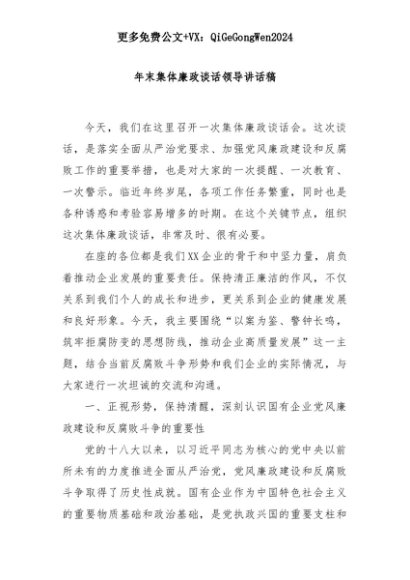 【七哥公文】2025年:年末集体廉政谈话领导讲话稿+更多免费公文+VX:QiGeGongWen2024+更多免费公文+VX:QiGeGongWen2024