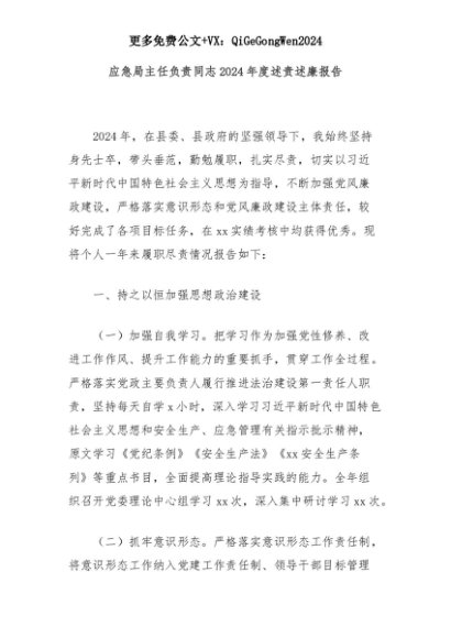 【七哥公文】2025年:应急局主任负责同志2024年度述责述廉报告+更多免费公文+VX:QiGeGongWen2024+更多免费公文+VX:QiGeGongWen2024