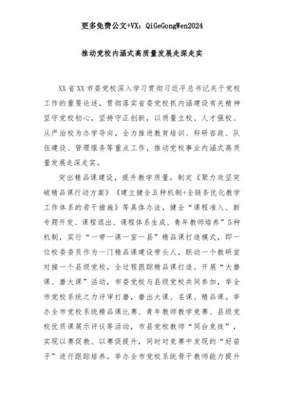 【七哥公文】2025年:推动党校内涵式高质量发展走深走实+更多免费公文+VX:QiGeGongWen2024+更多免费公文+VX:QiGeGongWen2024