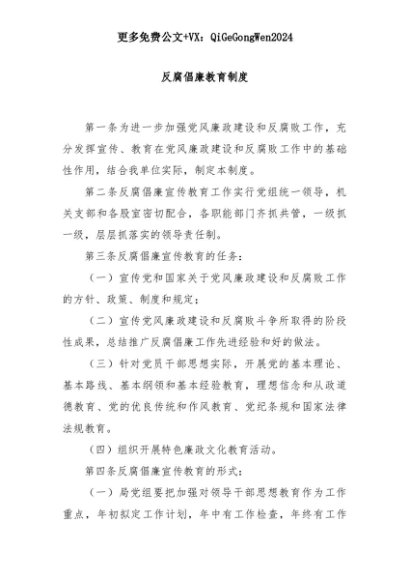 【七哥公文】2025年:反腐倡廉教育制度+更多免费公文+VX:QiGeGongWen2024+更多免费公文+VX:QiGeGongWen2024