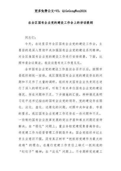 【七哥公文】2025年:在全区国有企业党的建设工作会上的讲话提纲+更多免费公文+VX:QiGeGongWen2024+更多免费公文+VX:QiGeGongWen2024