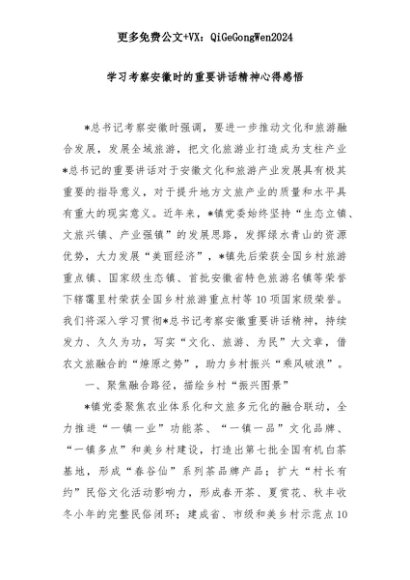 【七哥公文】2025年:学习考察安徽时的重要讲话精神心得感悟+更多免费公文+VX:QiGeGongWen2024+更多免费公文+VX:QiGeGongWen2024