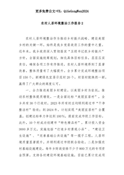 【七哥公文】2025年:农村人居环境整治工作报告2+更多免费公文+VX:QiGeGongWen2024+更多免费公文+VX:QiGeGongWen2024