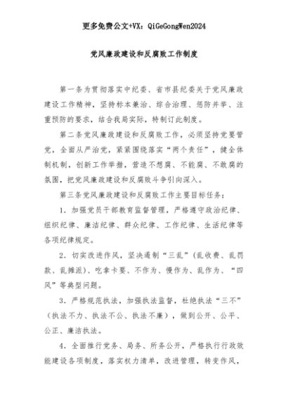 【七哥公文】2025年:党风廉政建设和反腐败工作制度+更多免费公文+VX:QiGeGongWen2024+更多免费公文+VX:QiGeGongWen2024