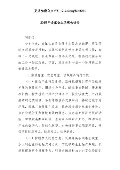 【七哥公文】2025年:2025年务虚会上某镇长讲话+更多免费公文+VX:QiGeGongWen2024+更多免费公文+VX:QiGeGongWen2024