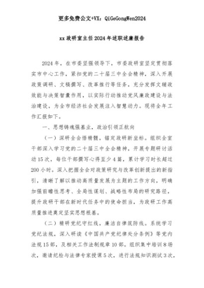 【七哥公文】2025年:xx政研室主任2024年述职述廉报告+更多免费公文+VX:QiGeGongWen2024+更多免费公文+VX:QiGeGongWen2024
