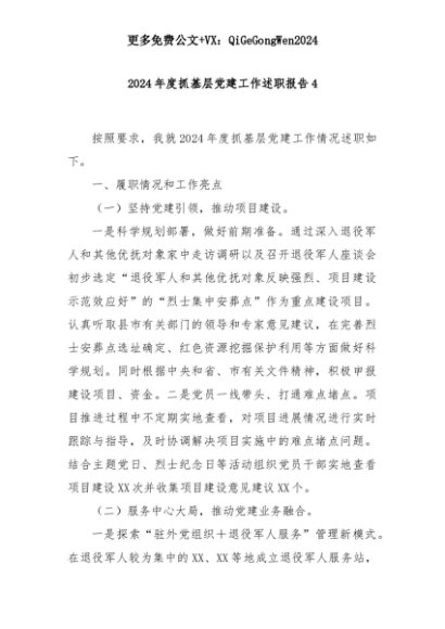 【七哥公文】2025年:2024年度抓基层党建工作述职报告4+更多免费公文+VX:QiGeGongWen2024+更多免费公文+VX:QiGeGongWen2024