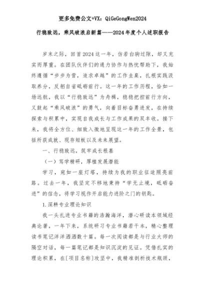 【七哥公文】2025年:行稳致远,乘风破浪启新篇——2024 年度个人述职报告+更多免费公文+VX:QiGeGongWen2024+更多免费公文+VX:QiGeGongWen2024