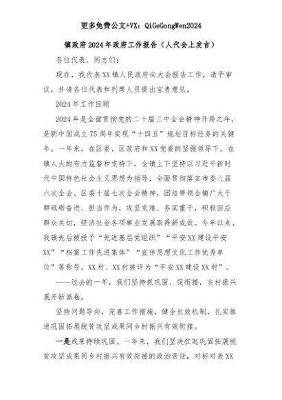 【七哥公文】2025年:镇政府2024年政府工作报告(人代会上发言)+更多免费公文+VX:QiGeGongWen2024+更多免费公文+VX:QiGeGongWen2024