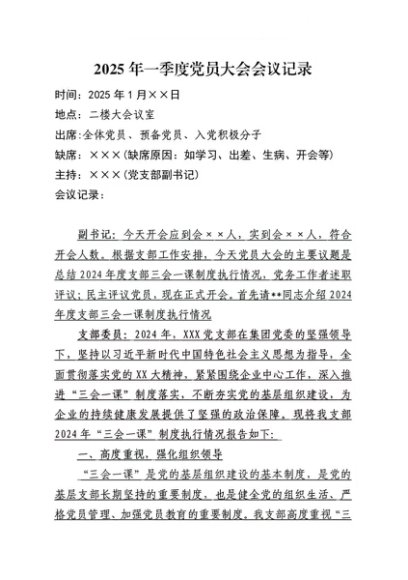 【七哥公文】2025年:07-2025年一季度党员大会会议记录(1月版)+更多免费公文+VX:QiGeGongWen2024+更多免费公文+VX:QiGeGongWen2024