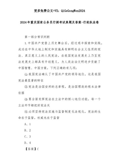 【七哥公文】2025年:2024年重庆国家公务员行测考试真题及答案-行政执法卷+更多免费公文+VX:QiGeGongWen2024+更多免费公文+VX:QiGeGongWen2024