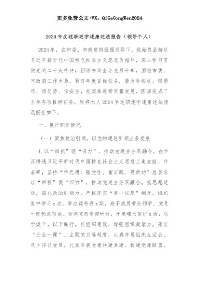 【七哥公文】2025年:2024年度述职述学述廉述法报告_(领导个人)+更多免费公文+VX:QiGeGongWen2024+更多免费公文+VX:QiGeGongWen2024