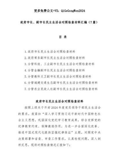 【七哥公文】2025年:(7篇)政府市长、副市长民主生活会对照检查材料汇编+更多免费公文+VX:QiGeGongWen2024+更多免费公文+VX:QiGeGongWen2024