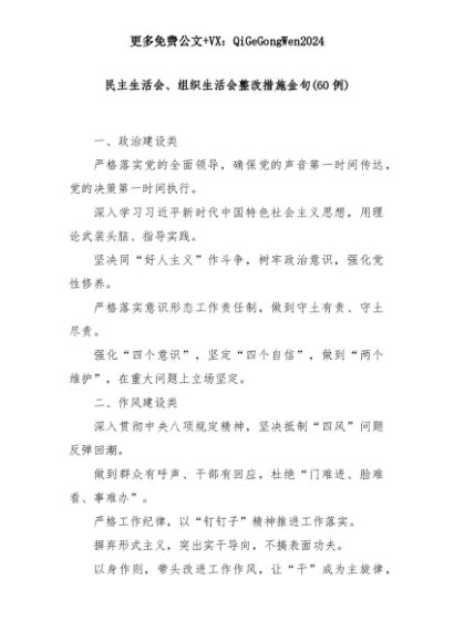 【七哥公文】2025年:(60例)民主生活会、组织生活会整改措施金句+更多免费公文+VX:QiGeGongWen2024+更多免费公文+VX:QiGeGongWen2024