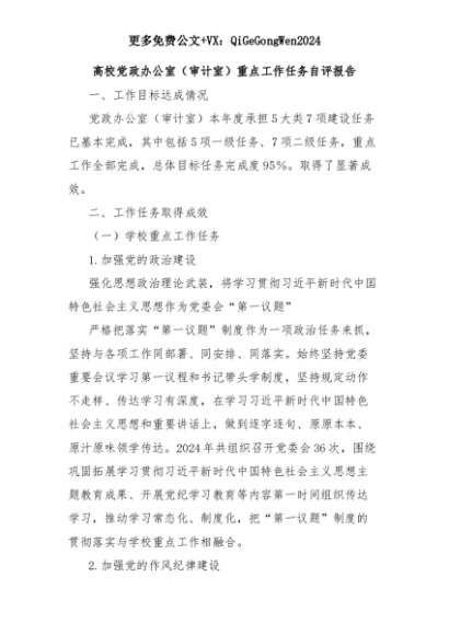 【七哥公文】2025年:高校党政办公室(审计室)重点工作任务自评报告+更多免费公文+VX:QiGeGongWen2024+更多免费公文+VX:QiGeGongWen2024