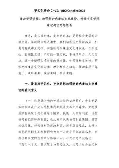 【七哥公文】2025年:廉政党课讲稿:加强新时代廉洁文化建设,持续夯实党风廉政建设思想根基+更多免费公文+VX:QiGeGongWen2024+更多免费公文+VX:QiGeGongWen2024