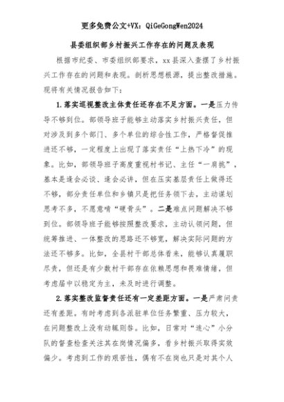 【七哥公文】2025年:县委组织部乡村振兴工作存在的问题及表现+更多免费公文+VX:QiGeGongWen2024+更多免费公文+VX:QiGeGongWen2024