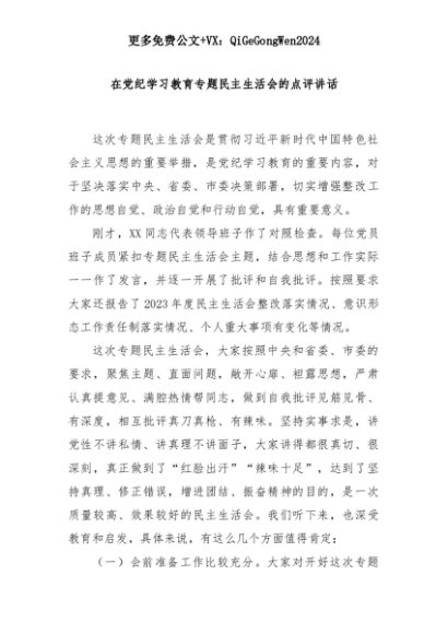 【七哥公文】2025年:在党纪学习教育专题民主生活会的点评讲话+更多免费公文+VX:QiGeGongWen2024+更多免费公文+VX:QiGeGongWen2024
