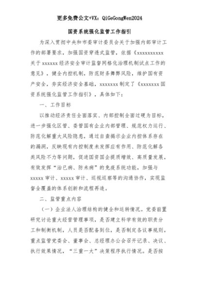 【七哥公文】2025年:国资系统强化监管工作指引+更多免费公文+VX:QiGeGongWen2024+更多免费公文+VX:QiGeGongWen2024