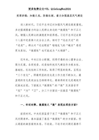 【七哥公文】2025年:党课讲稿:知微之危,防微杜渐,着力加强基层风气建设+更多免费公文+VX:QiGeGongWen2024+更多免费公文+VX:QiGeGongWen2024