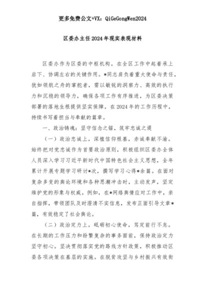 【七哥公文】2025年:区委办主任2024年现实表现材料+更多免费公文+VX:QiGeGongWen2024+更多免费公文+VX:QiGeGongWen2024