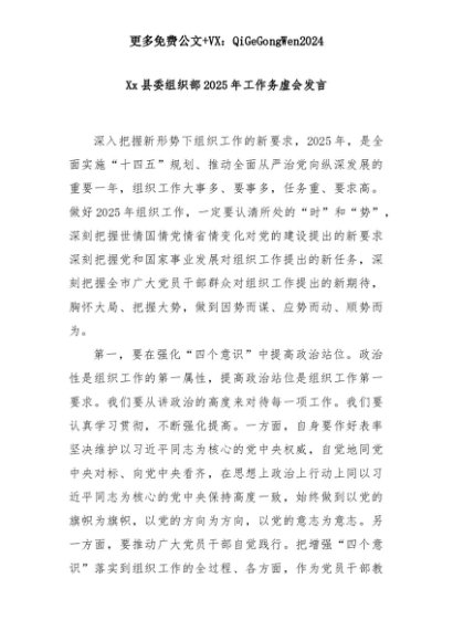 【七哥公文】2025年:Xx县委组织部2025年工作务虚会发言+更多免费公文+VX:QiGeGongWen2024+更多免费公文+VX:QiGeGongWen2024