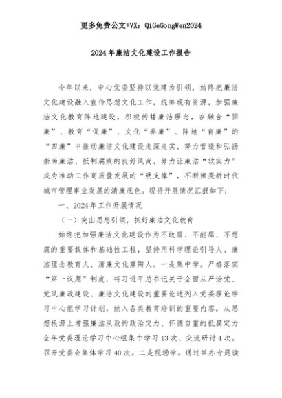【七哥公文】2025年:2024年廉洁文化建设工作报告+更多免费公文+VX:QiGeGongWen2024+更多免费公文+VX:QiGeGongWen2024