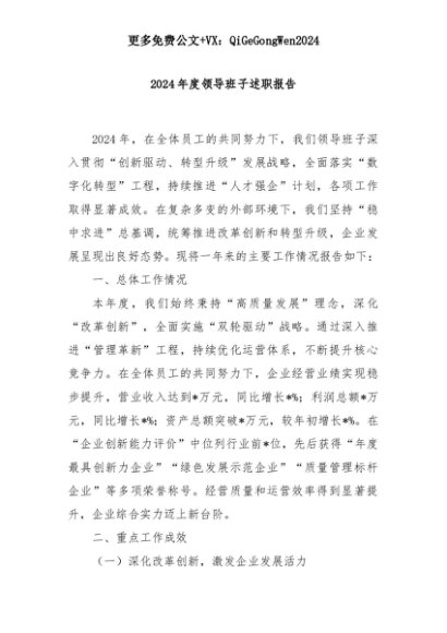 【七哥公文】2025年:2024年度领导班子述职报告+更多免费公文+VX:QiGeGongWen2024+更多免费公文+VX:QiGeGongWen2024