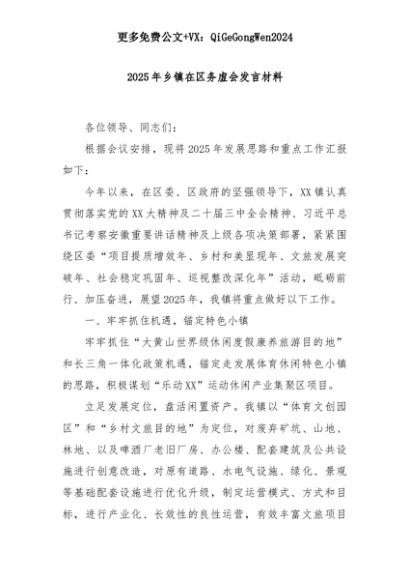 【七哥公文】2025年:2025年乡镇在区务虚会发言材料+更多免费公文+VX:QiGeGongWen2024+更多免费公文+VX:QiGeGongWen2024