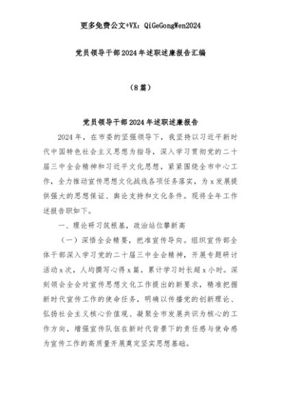 【七哥公文】2025年:(8篇)党员领导干部2024年述职述廉报告汇编+更多免费公文+VX:QiGeGongWen2024+更多免费公文+VX:QiGeGongWen2024